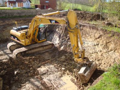 Am Freitag, 20. April 2012, kam der Bagger und buddelte uns ein großes Loch.